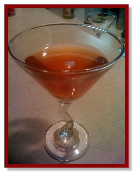 Mix in a shaker 1 1/2 cups of Cranberry or Pomegranate Juice. Add 3 ice cubes,