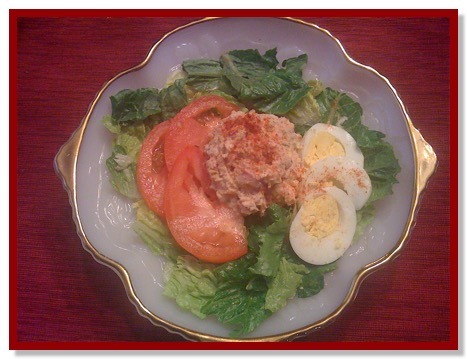 Scoop with an ice cream scooper onto dish and garnish with sliced tomatoes and sliced eggs